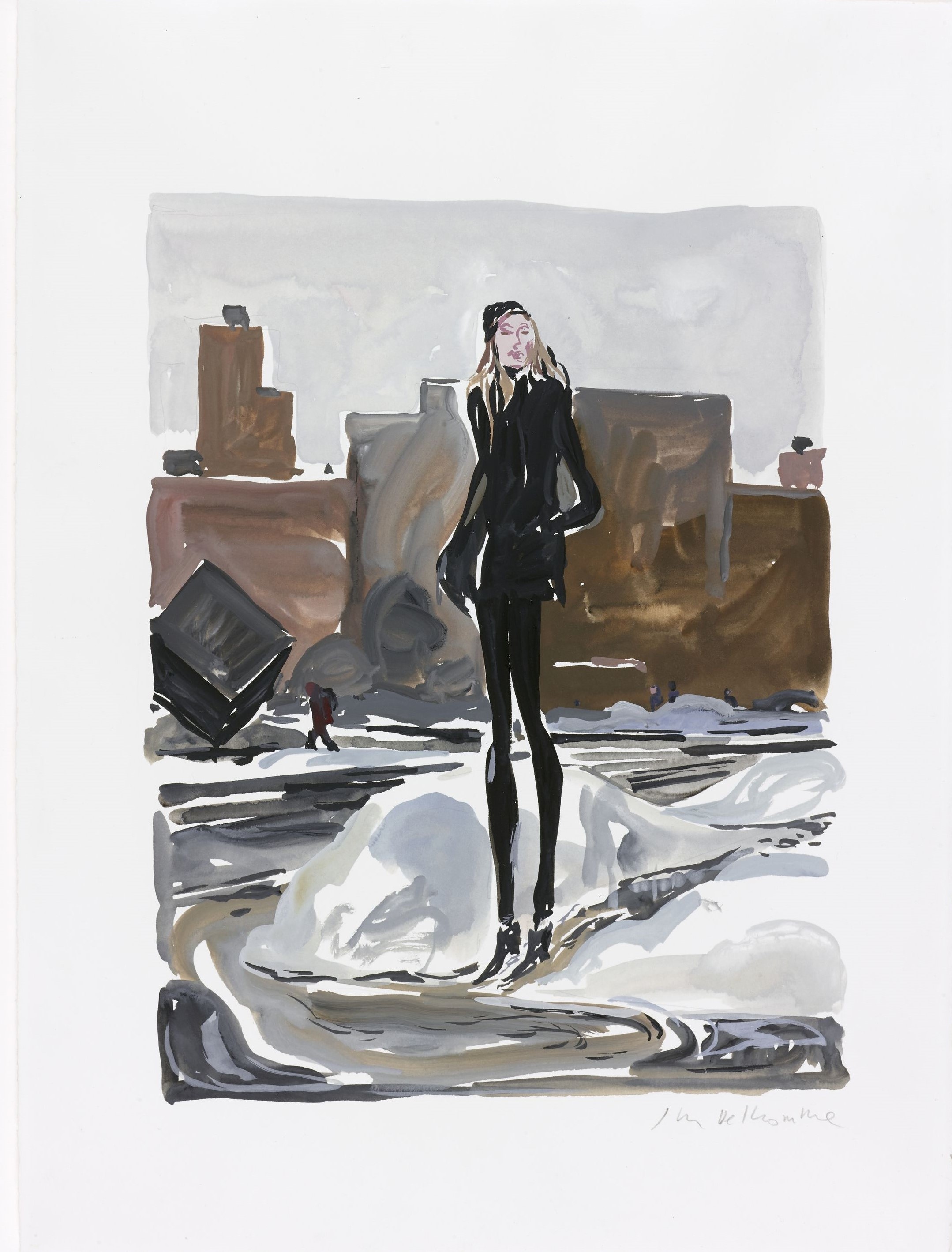Sa prédilection pour la technique de la gouache et son trait paradoxalement, à la fois allusif et précis sont particulièrement efficace pour saisir expressions et attitudes typiques de notre époque