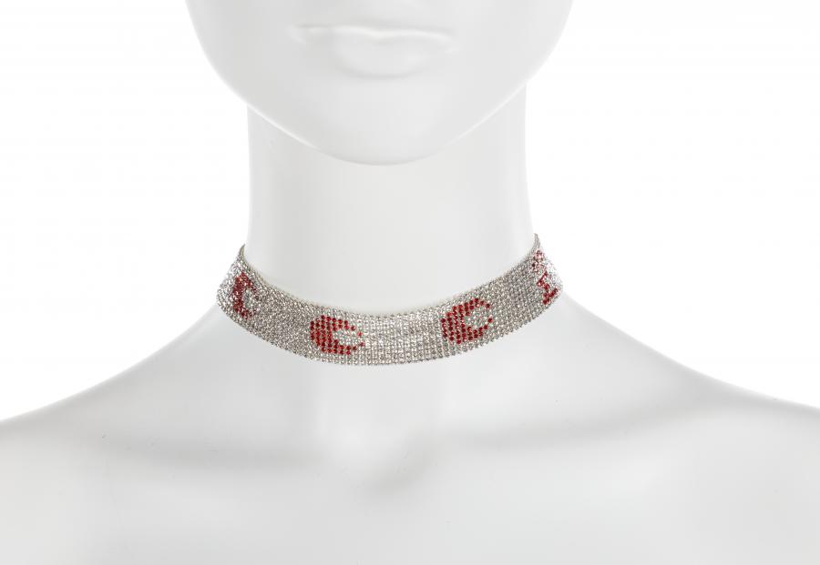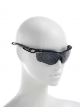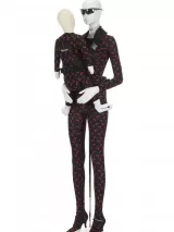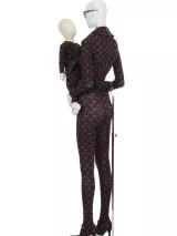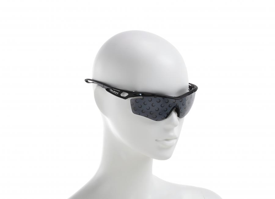 - Matériaux et techniques : Jersey 72% polyamide, 28% élasthanne noir imprimé rouge (jersey seconde peau crée en Belgique), découpé au laser. Monté au Portugal. Plastique noir moulé et ajouré, en partie imprimé de blanc. Plastique fumé noir imprimé noir plus opaque. Caoutchouc noir