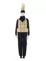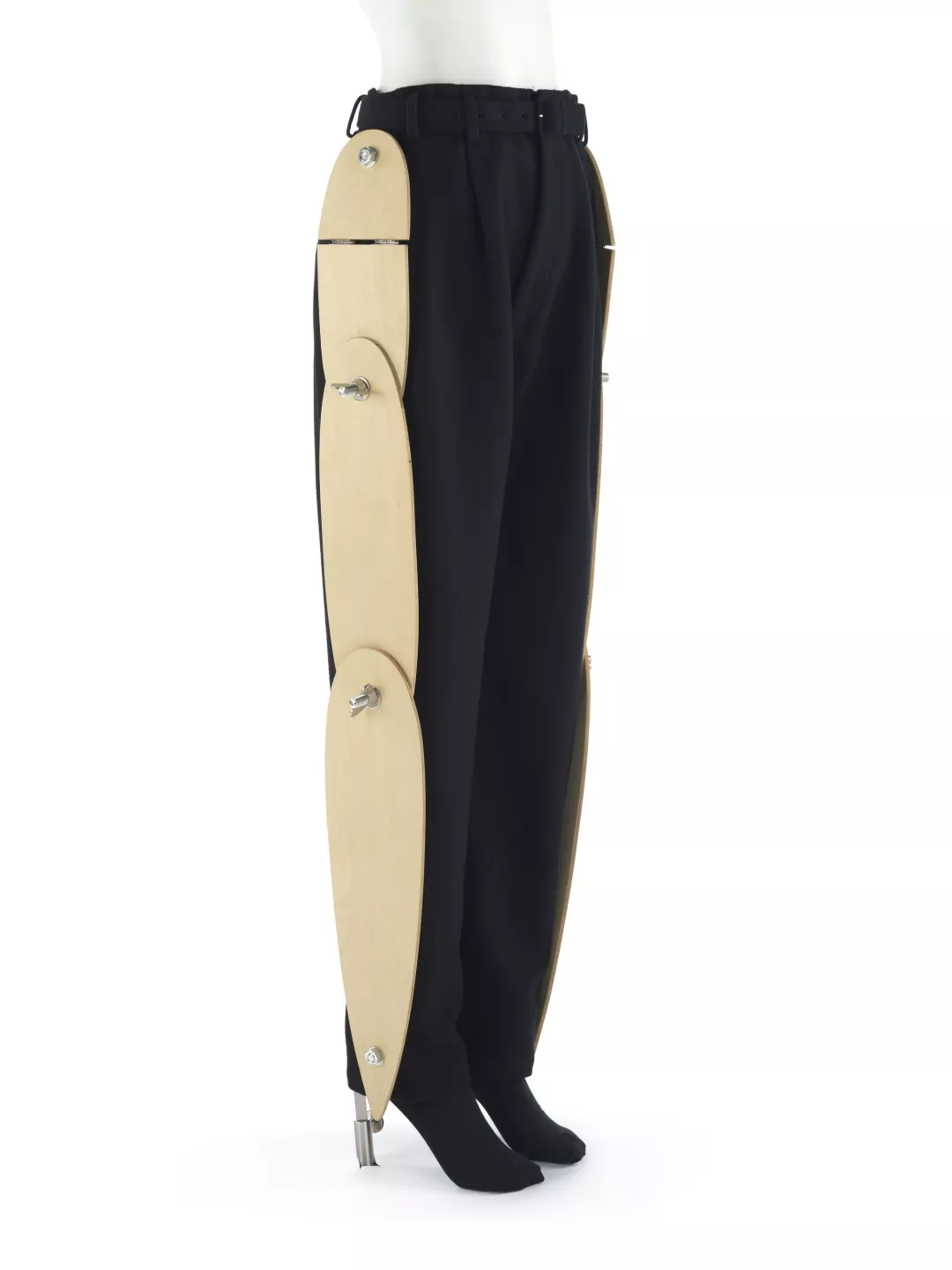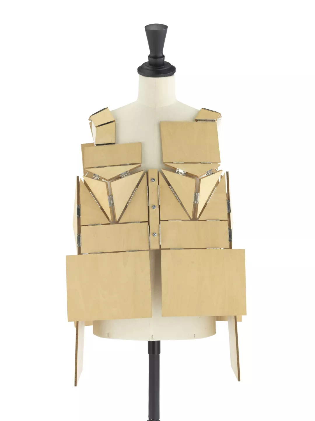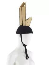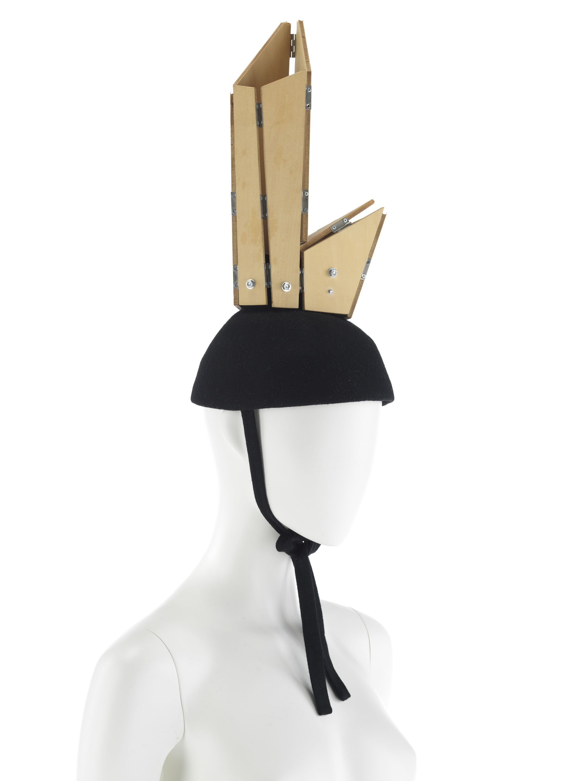 - Matériaux et techniques : Drap de laine noir, empiècements en bois, vis papillon en métal pour l'assemblage.