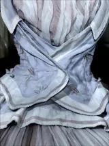 - Matériaux et techniques : Tulle polyester gris, taffetas, faux cheveux en crin