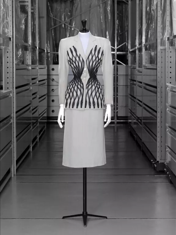 Cette proposition, éloignée du canon de la femme telle qu’elle était modelée par les contraintes imposées par la Seconde guerre mondiale, inaugure un âge d’or de la haute couture parisienne, celui des années 1950. La haute couture désigne un système de production vestimentaire de luxe, typiquement parisien, adressé aux femmes. Il s’agit alors de créer entièrement un vêtement aux proportions de la cliente dans les plus belles matières et les savoir-faire les plus exigeants.