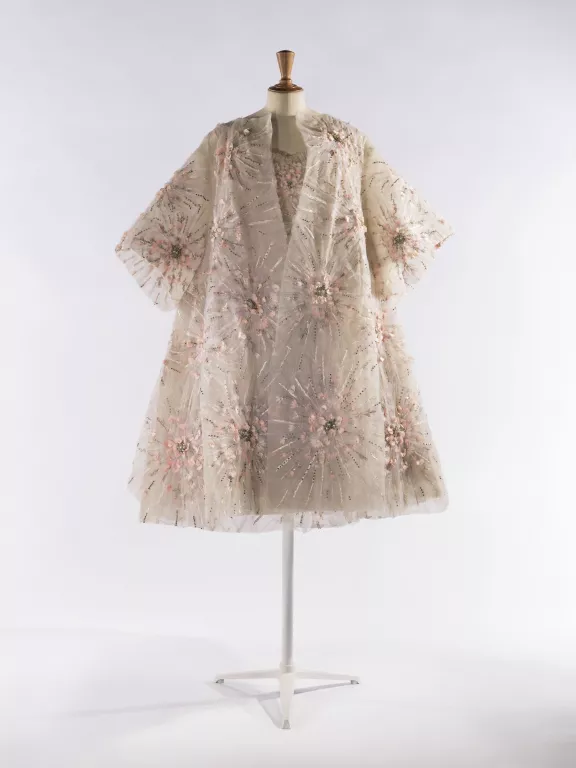 Les robes du soir qui composent le département, portées au cours de galas, de bals ou encore de premières, emblèmes de la haute couture, nourrissent l’imaginaire collectif. Cependant, la couture sait jouer de discrétion quand elle se fond dans la sobriété imposée de la journée. Robes, tailleurs et ensembles de jours en témoignent par leur esthétique et leur perfection technique faite de discrétion. Les collections du département sont riches de ces deux visages du savoir-faire qui fait la haute couture.