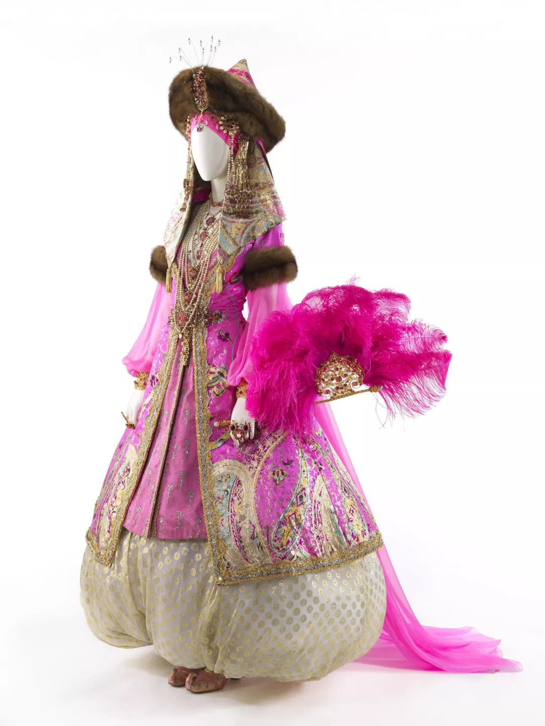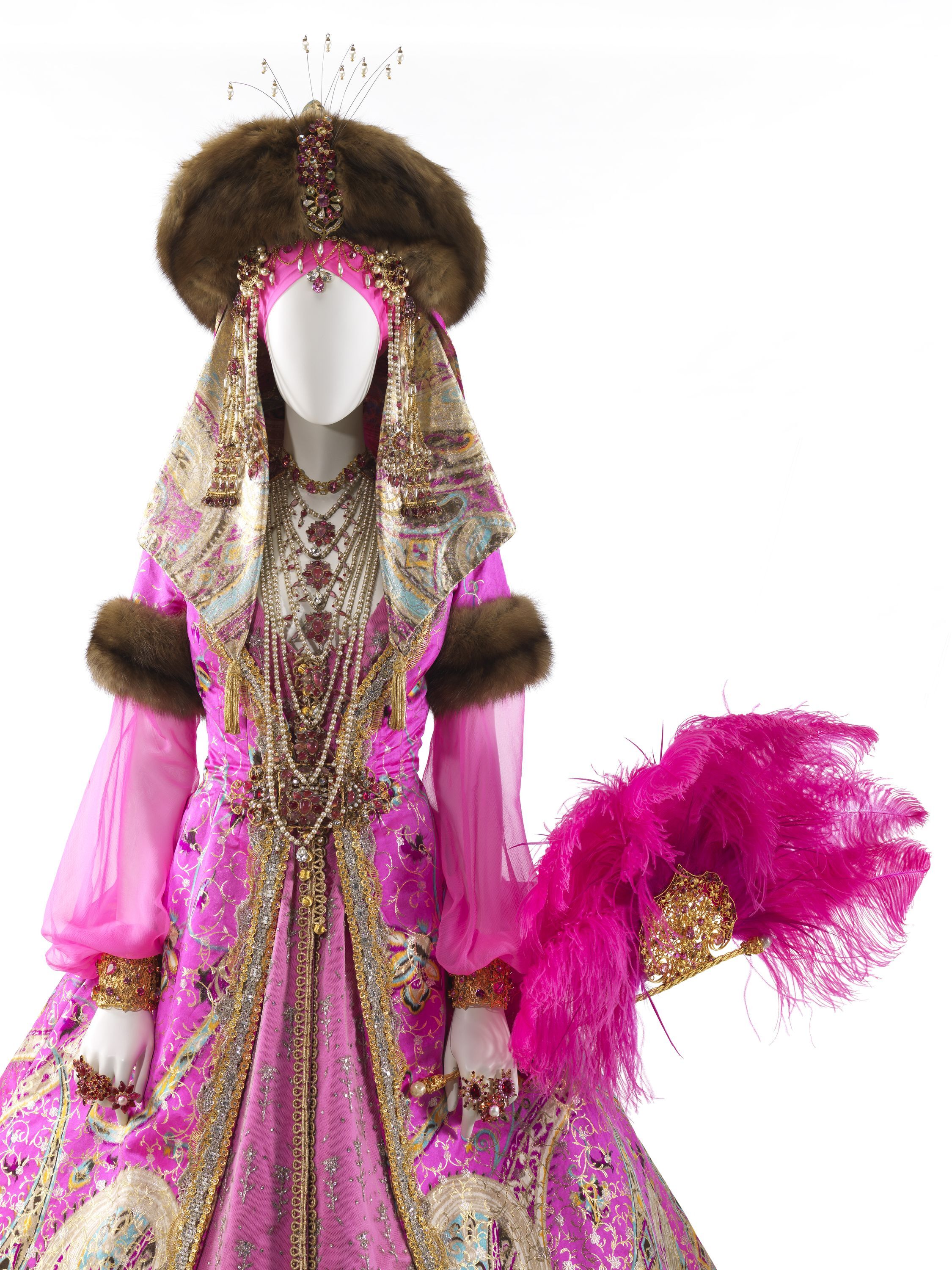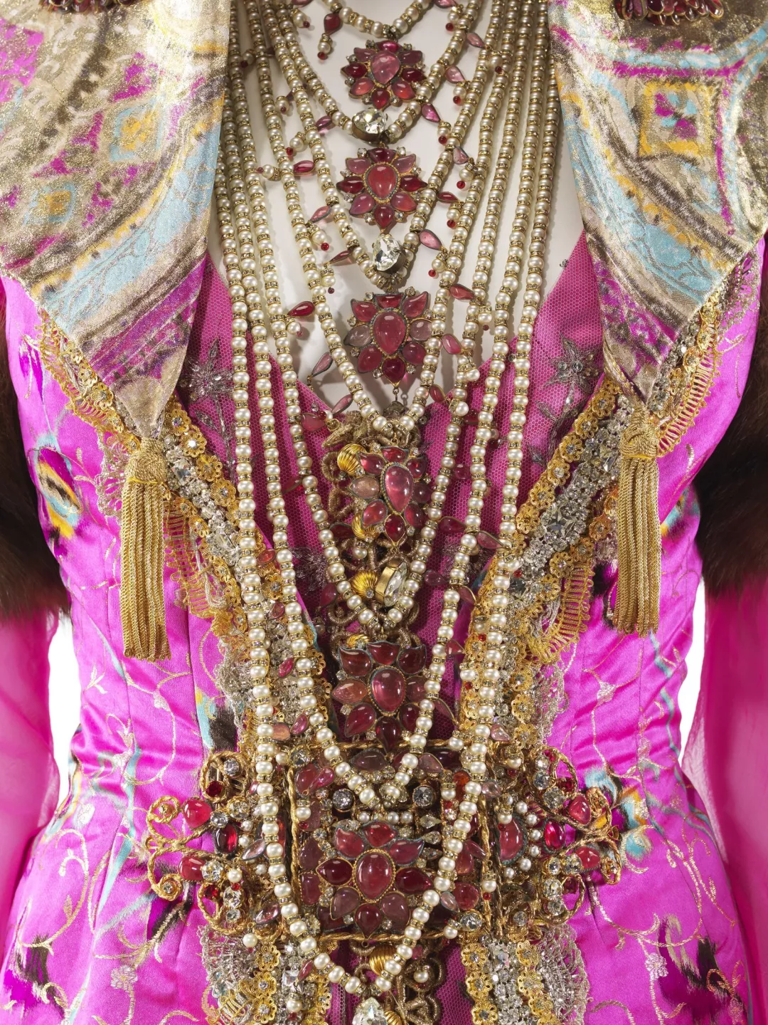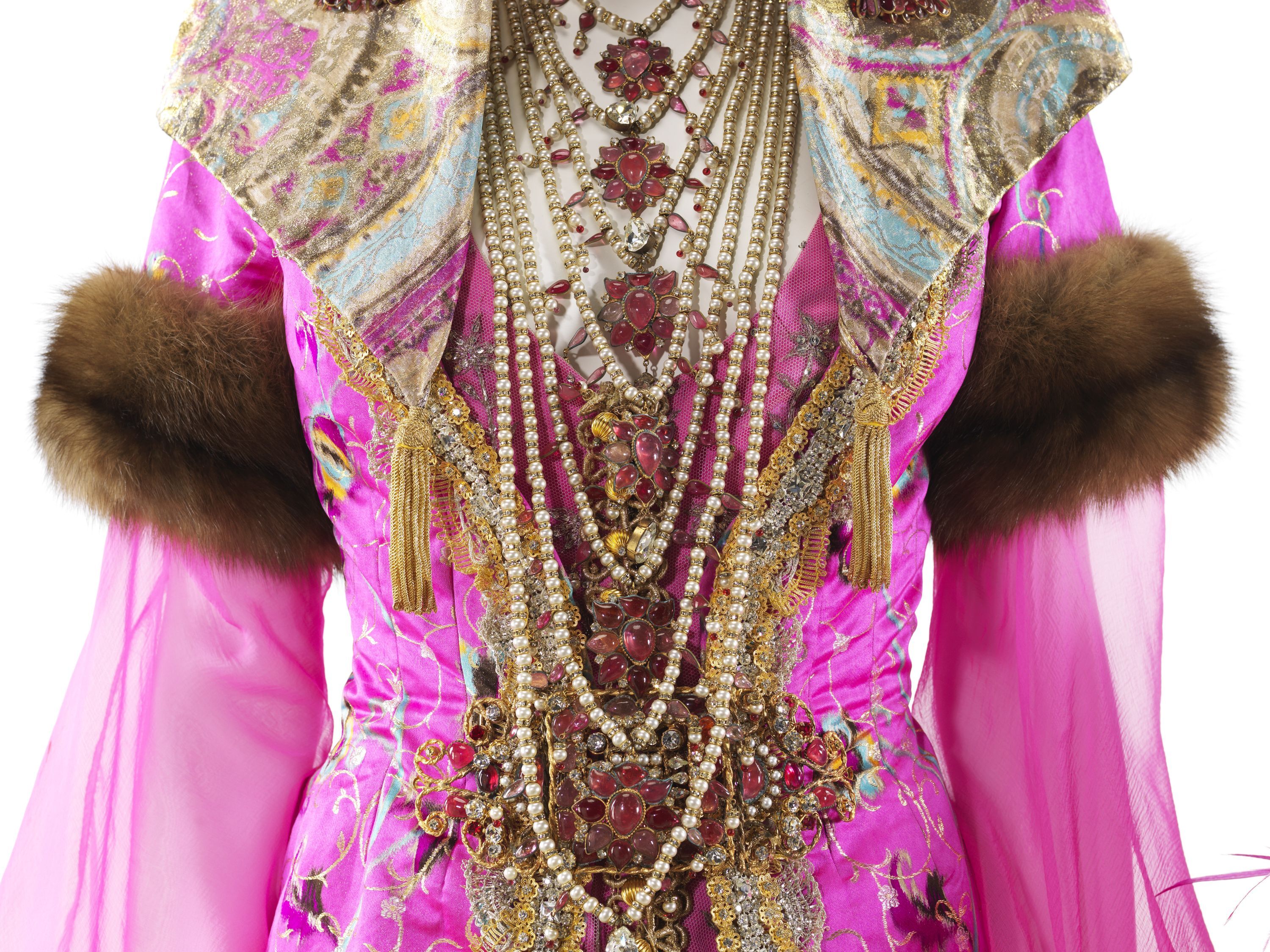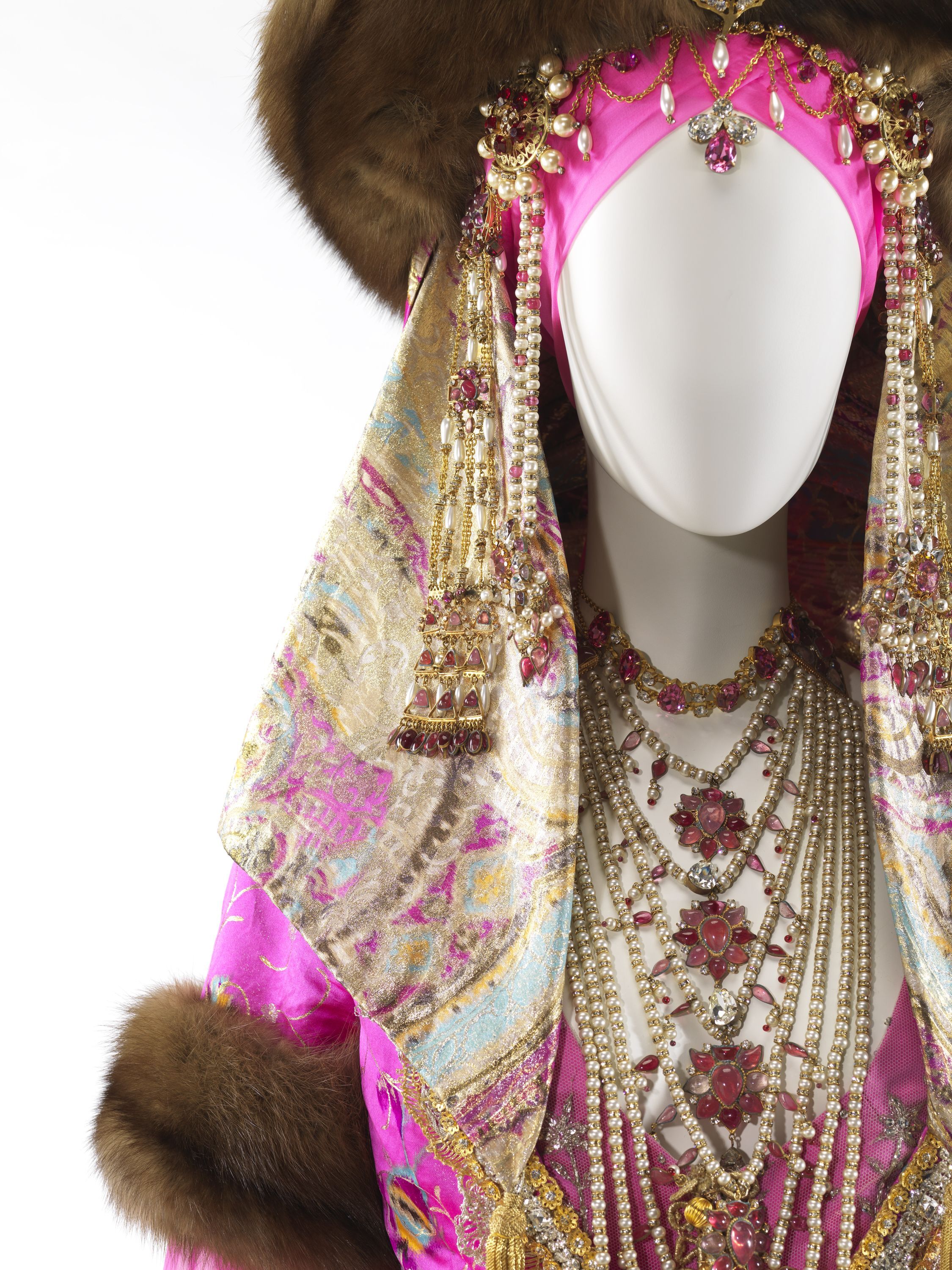 Costume réalisé à partir de vêtements et textiles récupérés par Jacqueline de Ribes pour le "Bal Oriental" donné par le baron Alexis de Rédé le 6 décembre 1969 donné à l'Hôtel Lambert.