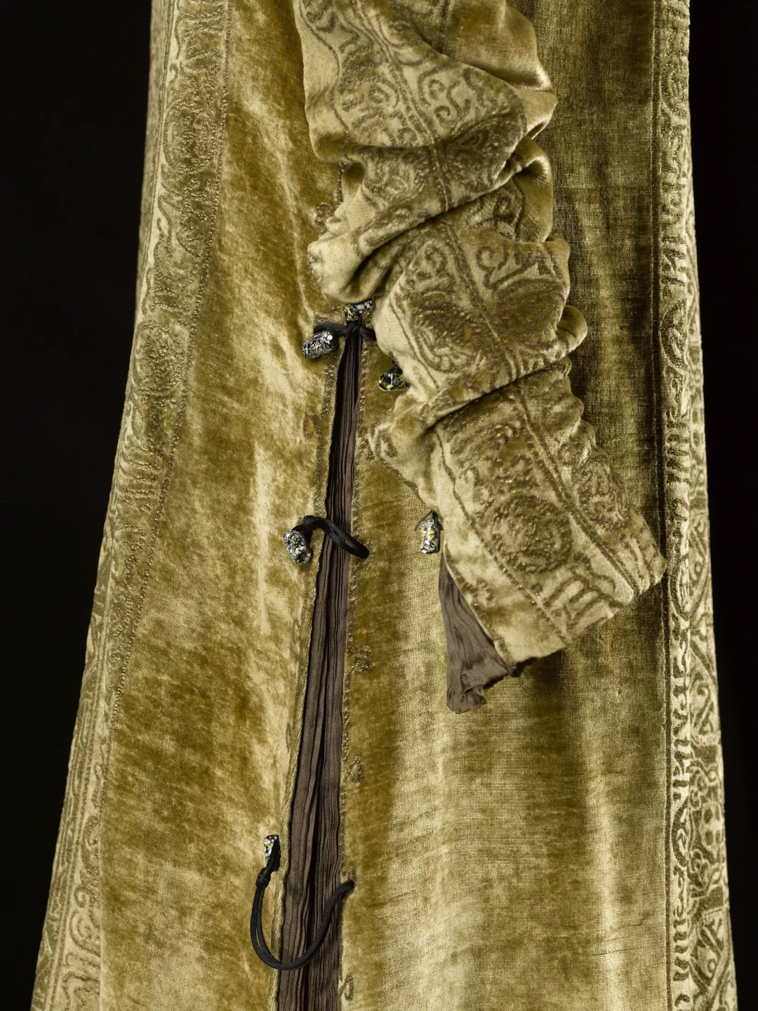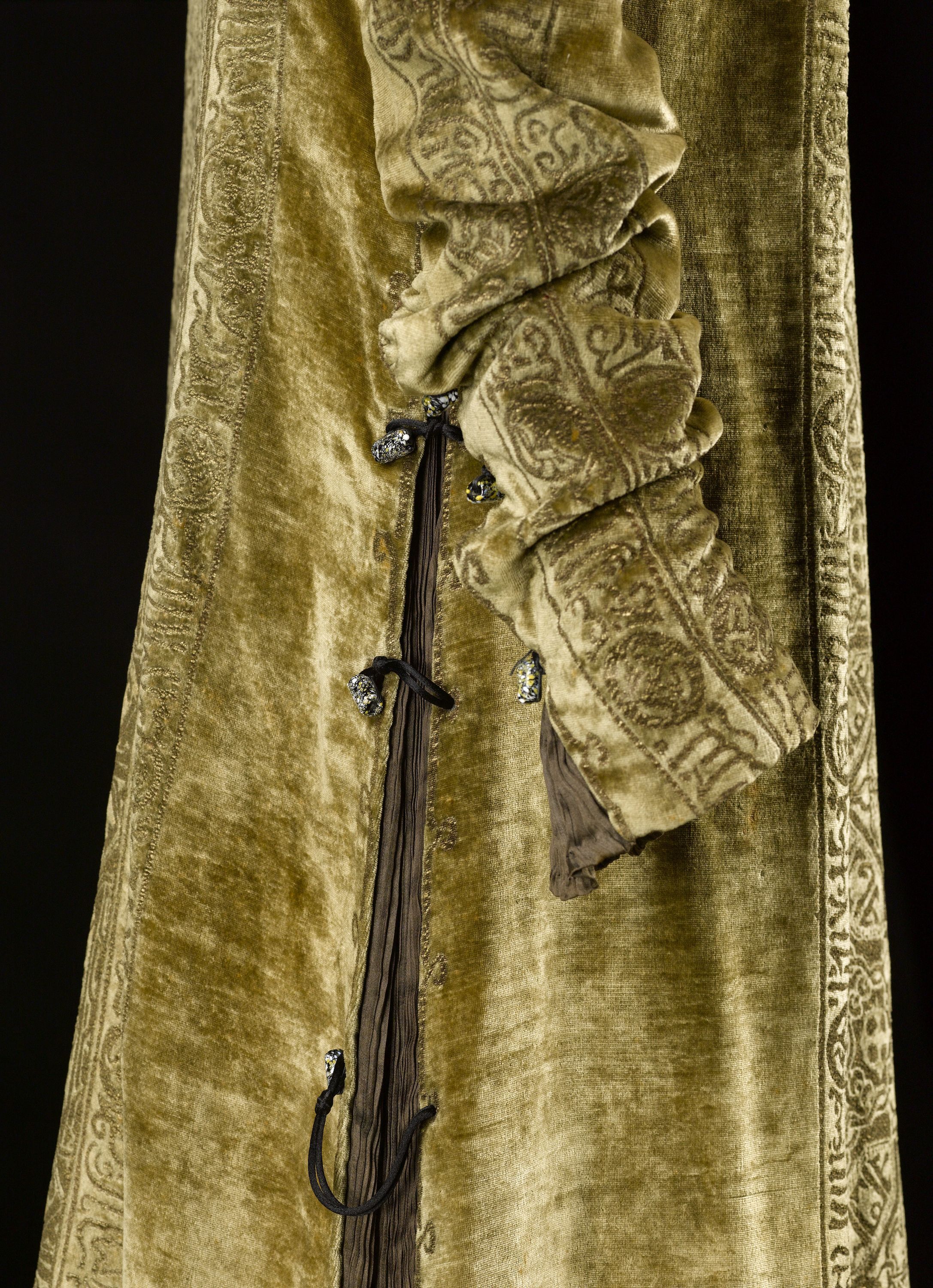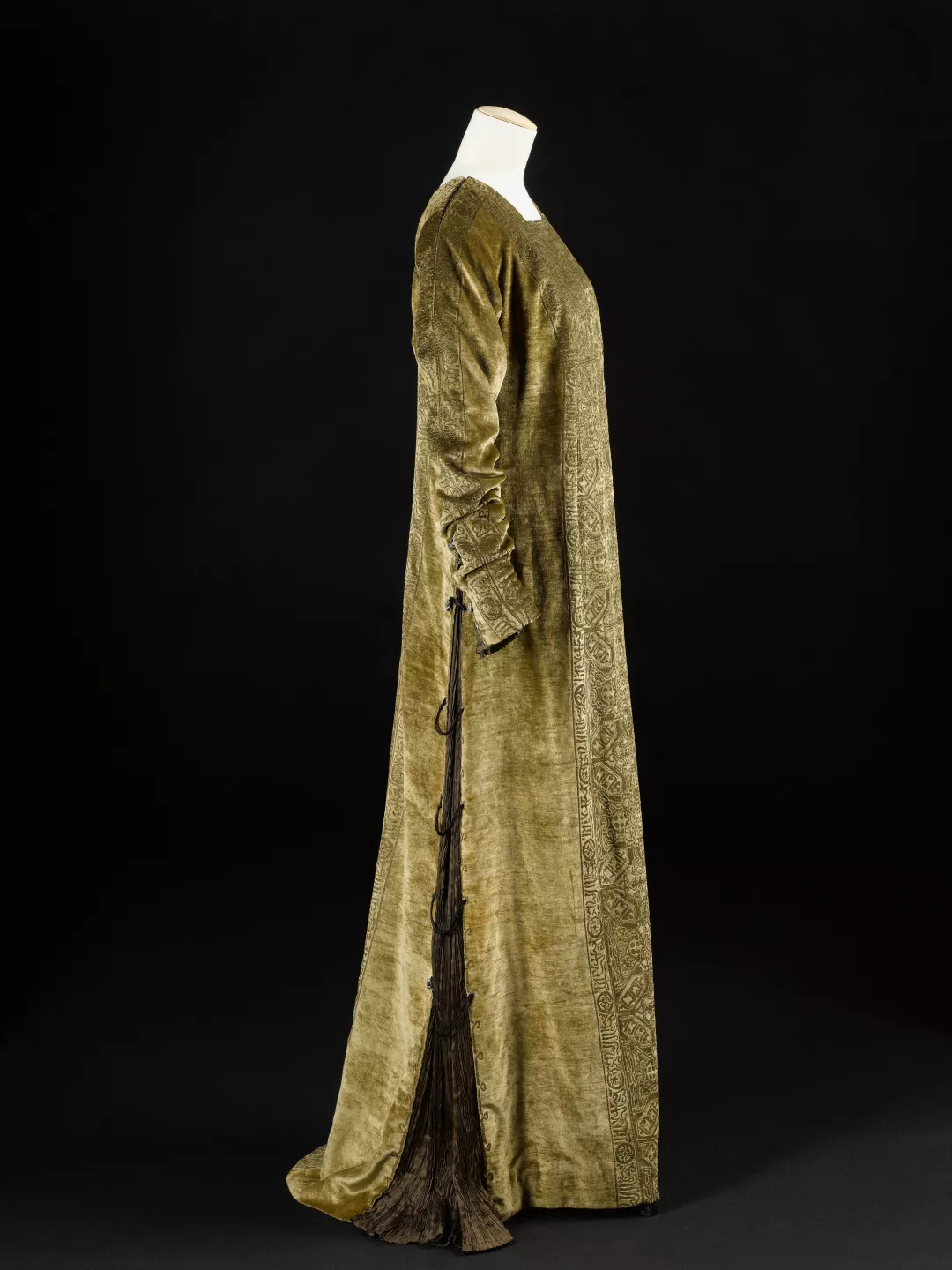 L'étude des livres de vente de la maison Fortuny, conservés principalement dans les archives du Museo Fortuny / Palazzo Fortuny à Venise, révèle que la célèbre robe "Eleonora" - comme l'appelait Mariano Fortuny lui-même - a été vendue en plusieurs exemplaires à de nombreuses personnalités du monde entier. Celui-ci appartenait à Ellen Terry (1847-1928), célèbre actrice anglaise du théatre shakespearien.