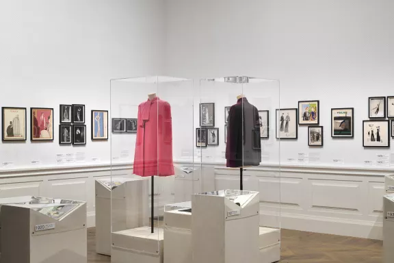Vogue Paris 1920-2020 rassemble près de 400 œuvres issues principalement des archives du magazine – photographies, illustrations, magazines, documents, films – ainsi qu’une quinzaine de modèles de haute couture et de prêt-à-porter.