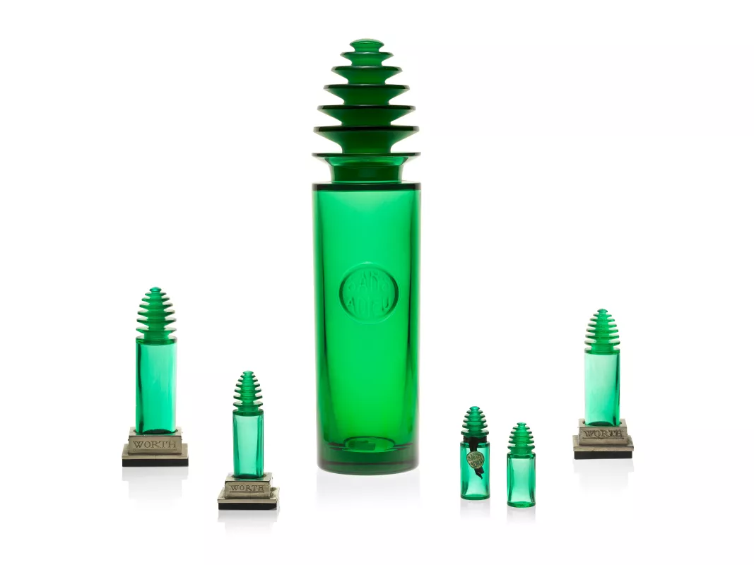 A la fin du XIXe siècle, la production et la distribution de parfums se modernisent. Les maisons de couture s’intéressent alors à la parfumerie, perçue comme un outil stratégique dans la construction de leur image de marque. En 1924, Worth lance son premier parfum, baptisé « Dans La Nuit ». Il sera suivi par de nombreux autres dont « Je Reviens », un parfum aux notes florales que l’exposition reproduit grâce à un dispositif olfactif en collaboration avec l’Osmothèque, Conservatoire International des Parfums.