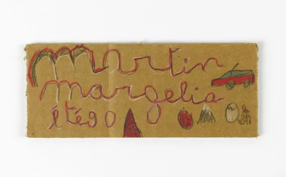 Dès la fin du 20e siècle, les créateurs se sont attachés à envoyer des invitations originales à leurs invités. Par exemple, pour la collection printemps-été 1990, la maison Martin Margiela a piloté un projet pédagogique avec des écoles en demandant aux enfants de participer à l’élaboration des invitations. Les dessins exécutés sur du carton ondulé issus de l’imaginaire des écoliers sont donc des productions uniques. L’un de ceux conservés au Palais Galliera comporte même une faute d’orthographe ! Accompagnés de la photocopie d’un plan d’arrondissement pour se rendre sur le lieu du défilé - un terrain vague du 20e arrondissement - et d’un feuillet de l’éphéméride du jour de l’évènement, l’ensemble de ces trois éléments constituent l’invitation dont la plupart ont aujourd’hui disparu.