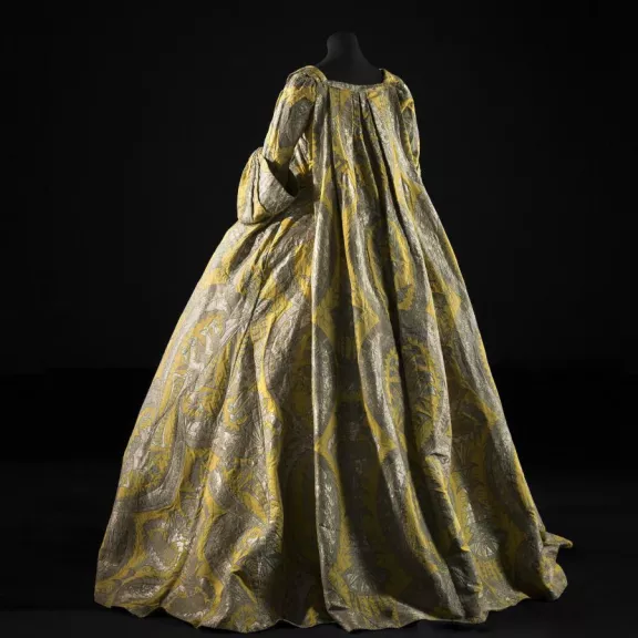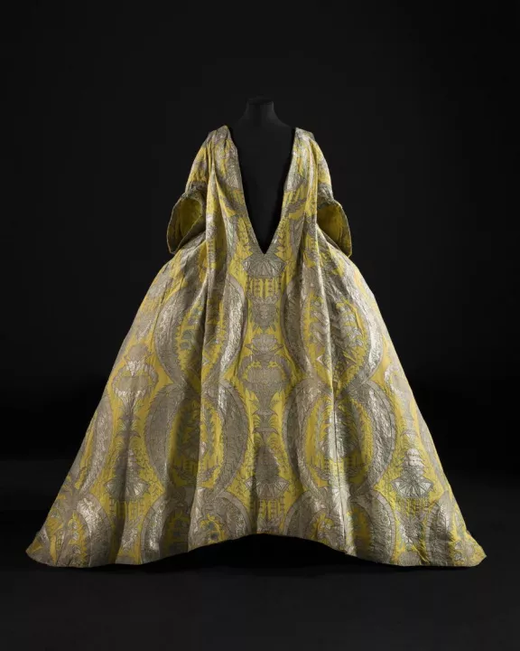 Cette robe est exemplaire de la mutation du vestiaire féminin de la fin du XVIIe et du début du XVIIIe siècle. Elle fait partie de la vaste famille des manteaux et robes de chambre, tenues dites de déshabillé au corsage plissé dissimulant le corps à baleines et à jupe relevée ou abattue sur une jupe de dessous. La mode oppose ces nouvelles venues à la robe jusque-là en usage, au corsage visiblement baleiné, à traîne, progressivement dévolue aux civilités officielles et de prestige.