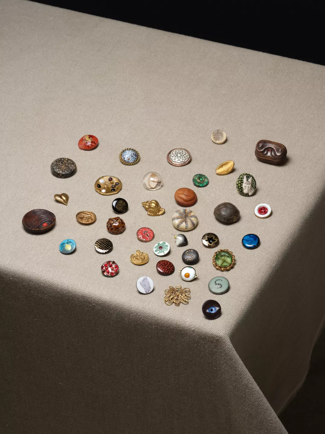- Matériaux et techniques : Matériaux divers (céramique, cuir, bois, pierres dures, émail, métal…)