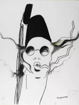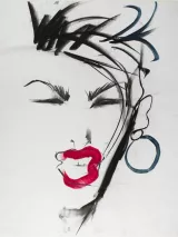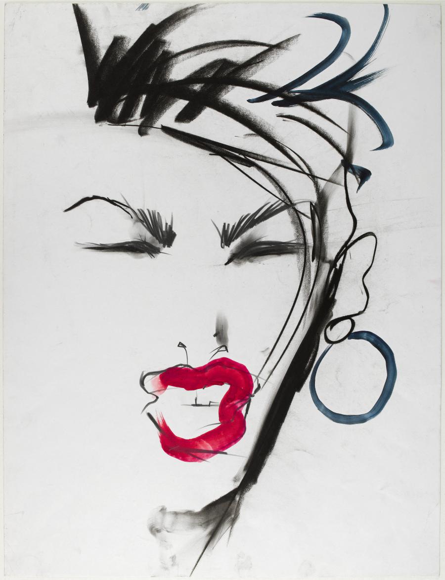 Enfin, le troisième dessin représente le mannequin Violetta Sanchez qui fut la muse d'Helmut Newton, de Thierry Mugler, Moschino and Yves Saint Laurent dans les années 1980.